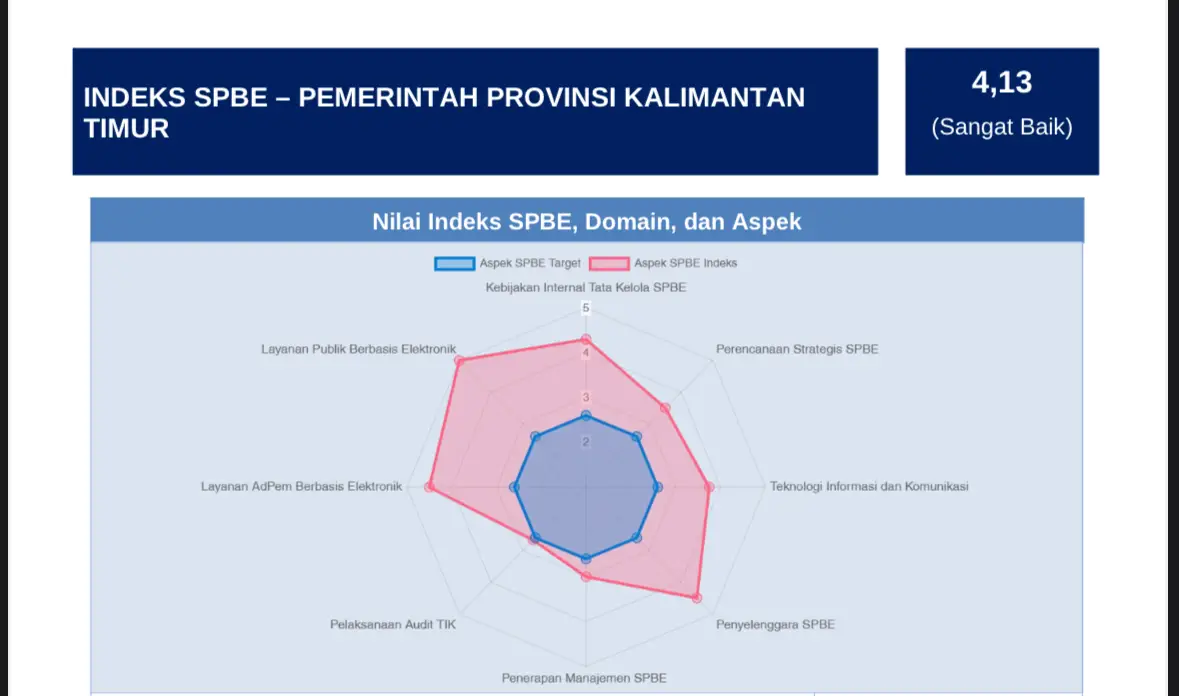 Samarinda – Pemerintah Provinsi Kalimantan Timur (Pemprov Kaltim) mencatatkan capaian membanggakan dalam penerapan Sistem Pemerintahan Berbasis Elektronik (SPBE) Tahun 2025 dengan meraih indeks 4,13dan masuk kategori “Sangat Baik”.